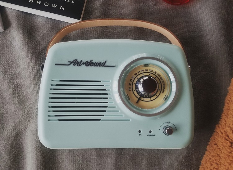 When I had told my mother at the end of 2019 of my plans for redecorating my apartment to add a bit more blue and mint tones (my place is currently a gray/white/black color scheme) and had wanted to incorporate some retro/vintage pieces, as well- she wasted no time in finding this adorable little minty-hued radio from Art+Sound to surprise me with.