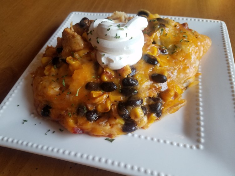 I’m talking about my slow cooker, and the recipe I’m referencing is this “set it and forget it” style chicken enchilada casserole. With just a few minutes of prep work- you can cook this meal in approximately five-to-six hours with no fuss- giving you enough time to get your errands done, catch up on e-mails, or binge watch an entire season of your favorite show on Netflix.