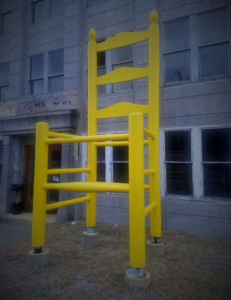 Gardner is also called “Chair City,” which was seemingly celebrated by Wayside Furniture with the big yellow metal chair fixture outside what remains of the family-owned business. You can’t miss it from the road. It’s huge.
