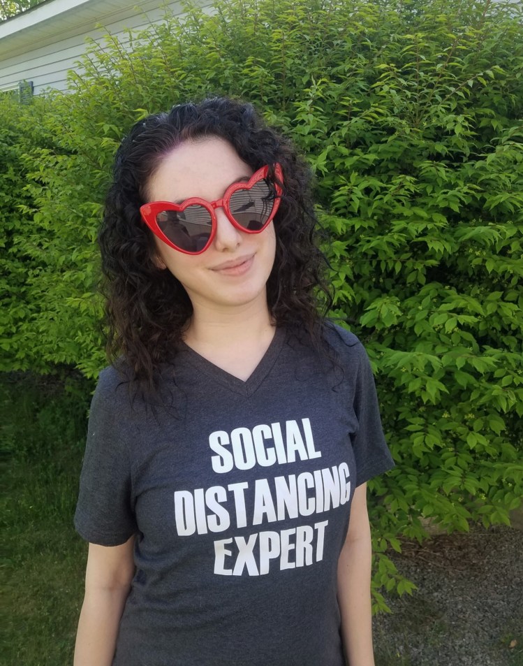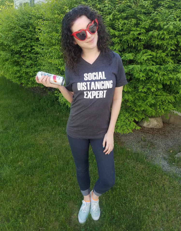I picked up this comfy cotton “SOCIAL DISTANCING EXPERT” t-shirt through Etsy not too long after quarantine first began- part of a series of cabin fever-induced online purchases I made to keep myself entertained- and it seemed like just as good a time as any to wear it out and about with a pair of cropped skinny jeans and some low-top sea foam-colored sneakers.
