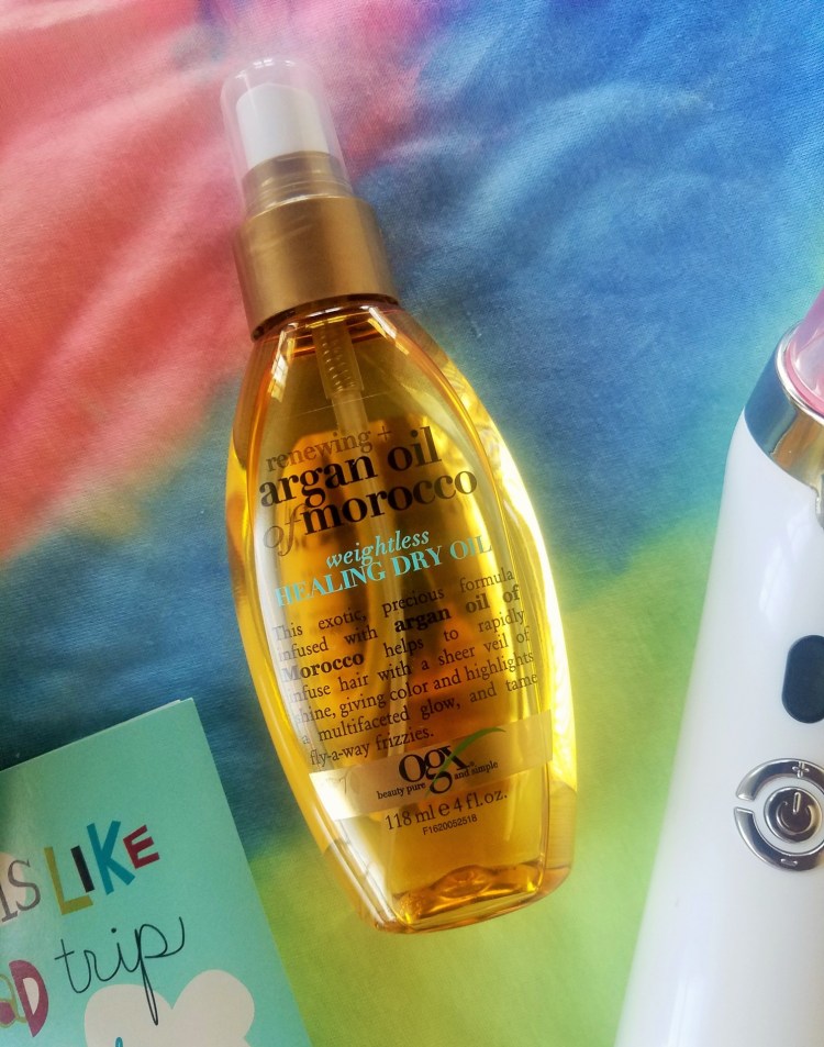 This time of year I always return to an old favorite of mine from OGX. Their Argan Oil of Morocco Healing Dry Oil continues to deeply hydrate my curls and makes my hair super shiny, smooth and soft during a time of year when the sun, heat and humidity can do some serious damage to it.