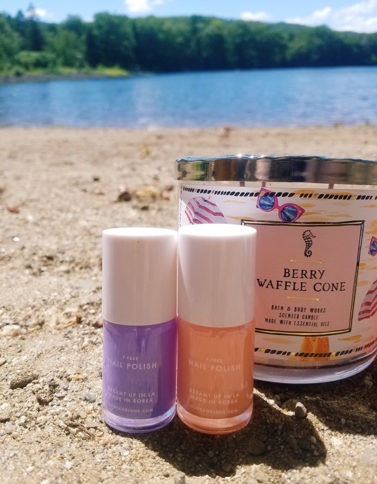So in the meantime, I’ve been doing my own nails- which never looks quite as good as when I have them done by someone else- but has been friendlier on my cuticles and my budget. For the Summer, I turned to these two lovely and bright shades from Olive & June. Vegan and free of harmful chemicals- these polishes are long-lasting and apply smoothly. The purple shade, “Bold & Unshaken” is my favorite for my hands- while the soft coral, “Wild & Free” looks great on my toes. And now that I’m wearing sandals all day every day- I get to admire my handiwork as it slowly improves with practice!