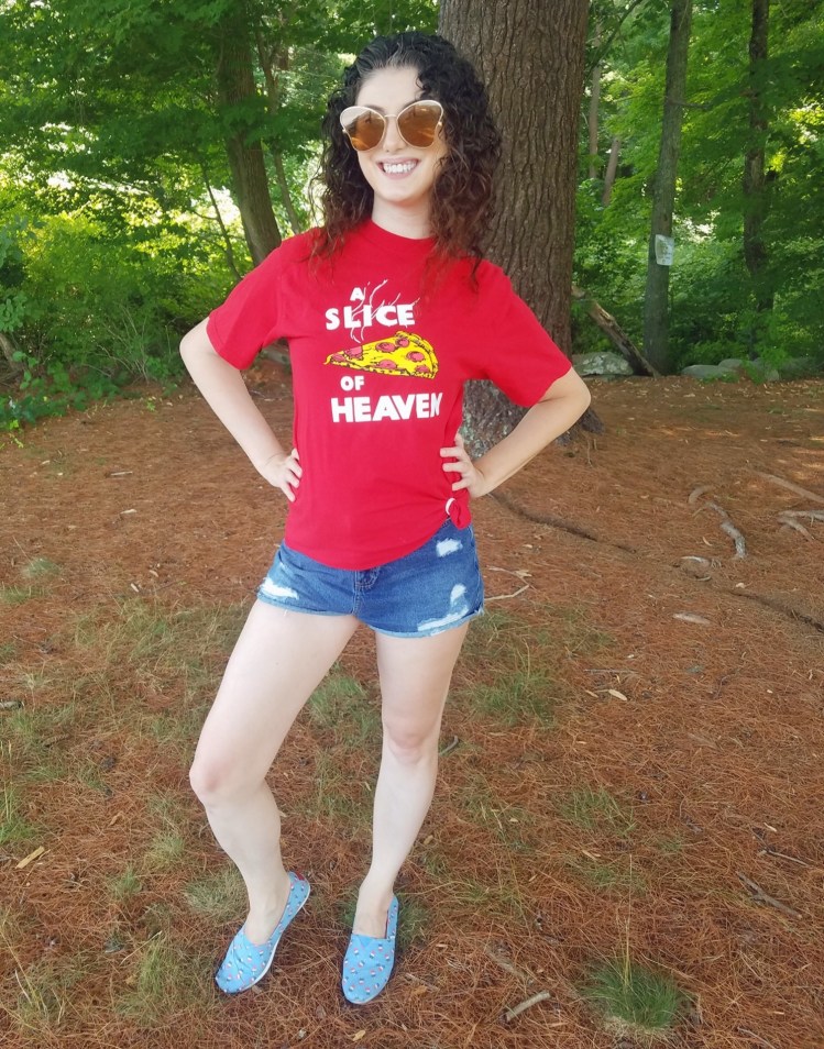 I picked up this shirt while grabbing pizza a couple of weeks ago when I visited Mystic, and it’s quickly become one of my favorites. It’s big, soft and bright- and with some shorts and slip-on flats- I was ready to go about my day.