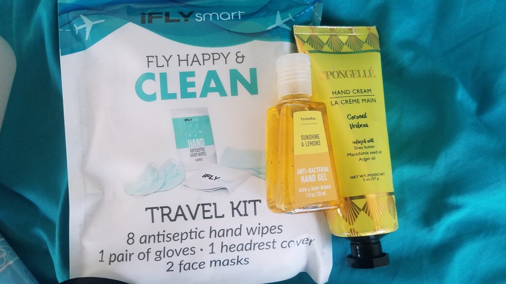 Of course, the items within the kit are all well and good- but I also make sure to bring along some extra hand sanitizer/anti-bacterial hand gel in case I touch any surfaces on the plane that might have been missed by the cleaning crew and flight attendants prior to departure (window shades, pull-down trays, seatbelt buckles, TV screens, etc.) I also try to get these quick-absorbing gels in scents that aren’t straight up rubbing alcohol or anything too potent- since I don’t want to inconvenience any of the people sitting around me- even if it’s only for a few seconds! I love the little multi-packs from Bath & Body Works. They come in a variety of fragrances that smell great and aren’t too drying.