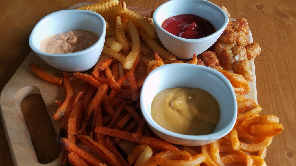 So, being a fan of more quick and easy recipes this time of year- especially ones where there’s minimal cleanup involved afterwards- I recently prepared my own version of a charcuterie that was dedicated entirely to French fries and dipping sauces.
