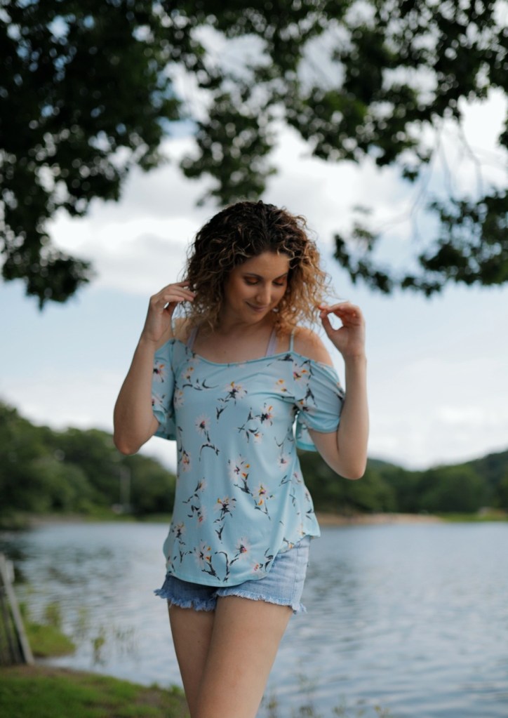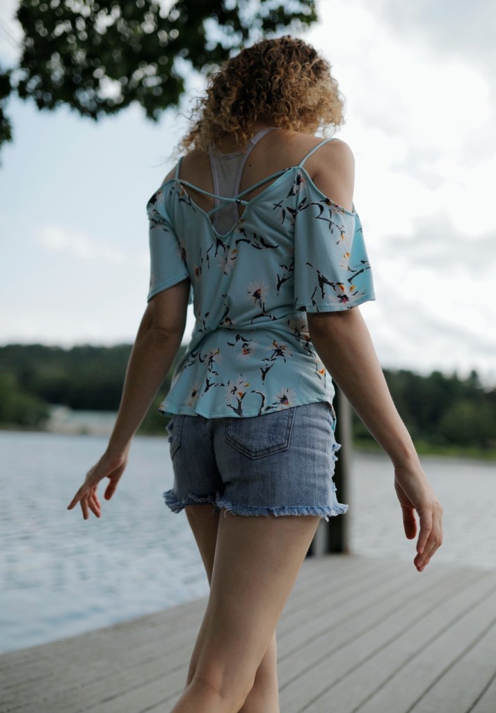 What do you wear when you have lakeside plans on a partly cloudy New England afternoon in August but need to find a comfortable middle ground between a super low-key swimsuit and a slightly-more-formal sundress? Well, if you’re like me- you keep it cute and casual with a cold shoulder top and a distressed pair of denim shorts.