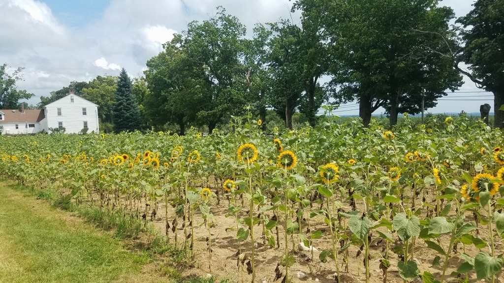 This past weekend, just as the sun was starting to get highest in the sky and the temperatures soared once more, I stopped by one of my favorite places in Phillipston, Massachusetts- Red Apple Farm– to pick some fresh blueberries and enjoy the beautiful views of their blooming sunflower fields.