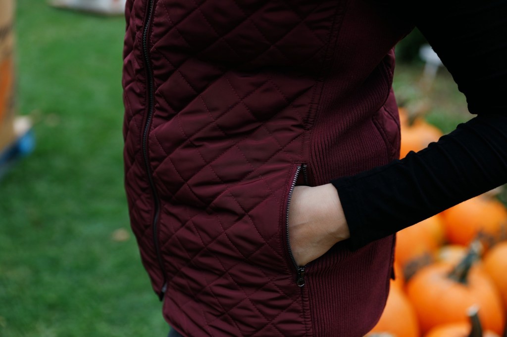 This past weekend also saw me heading up to Vermont for one of my first pumpkin patch/picking adventures with my friend Dan and his family- who were visiting from New York for the day and wanted to meet up for their annual farm visit and a quick lunch. Given the true New England Autumnal forecast- it seemed like just as good a time as any to break out my burgundy, zip-up thermal vest from Market & Spruce to keep me warm- and looking chic!- and give me some extra pockets to work with since my hands were going to be full at the farm.