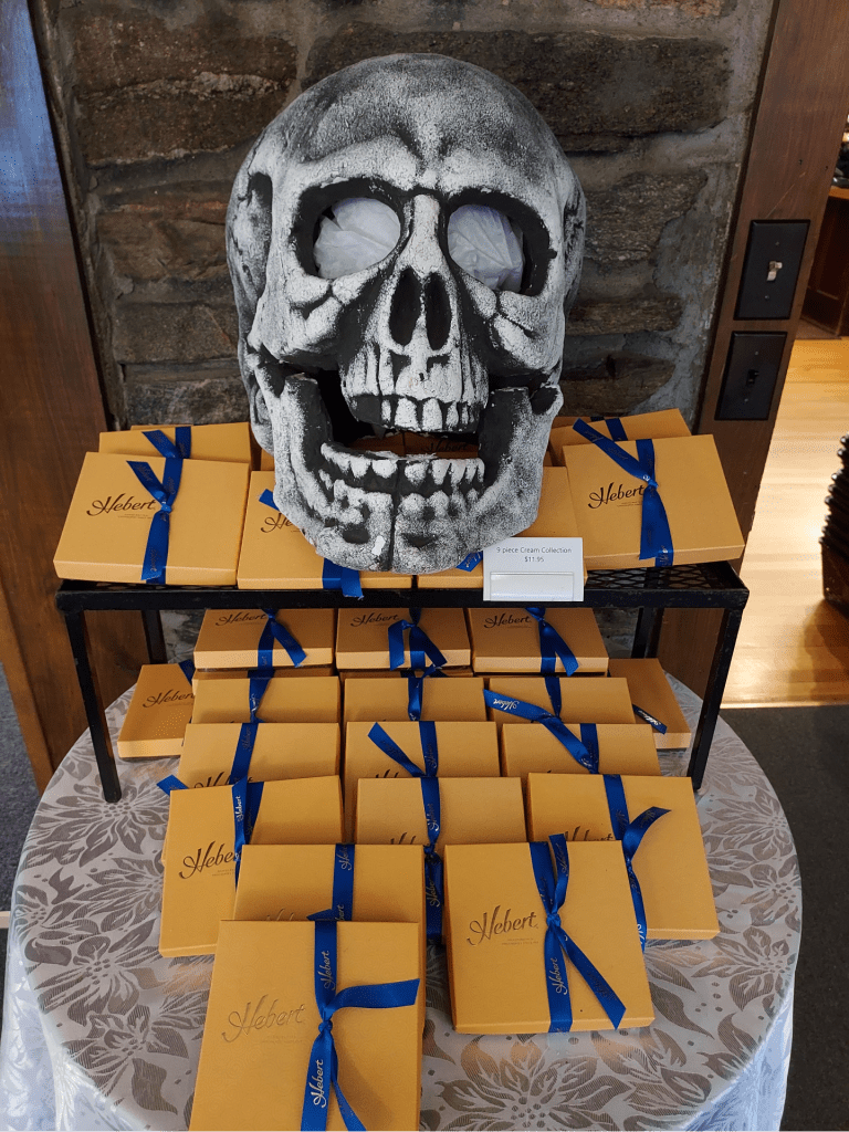While I was there, I snapped some photos and stocked up on their “BOO! Bars” to pass out on Halloween (regular milk chocolate bars with fun and spooky packaging)– as well as their specialty candy bars with flavors like s’mores, mint, coconut crunch, peanut butter, etc.