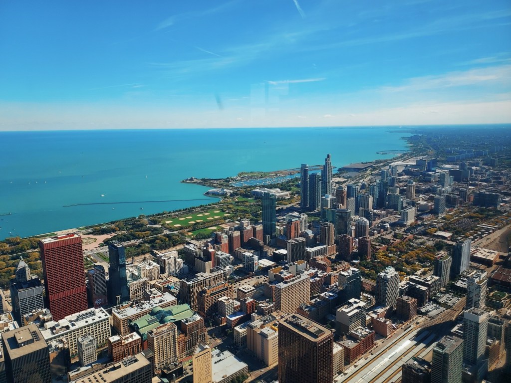 On Saturday, my last full day in town- Troy and I went back to The Bean so he could experience it, too- and managed to walk over to Willis Tower where we had expedited tickets to check out the Skydeck on the 103rd floor. I’m not particularly fond of heights- so having the courage to step out onto a glass floor that separated me and certain death was pretty huge. I look absolutely terrified in every photo of me taken while I was out there- but it was huge nonetheless!