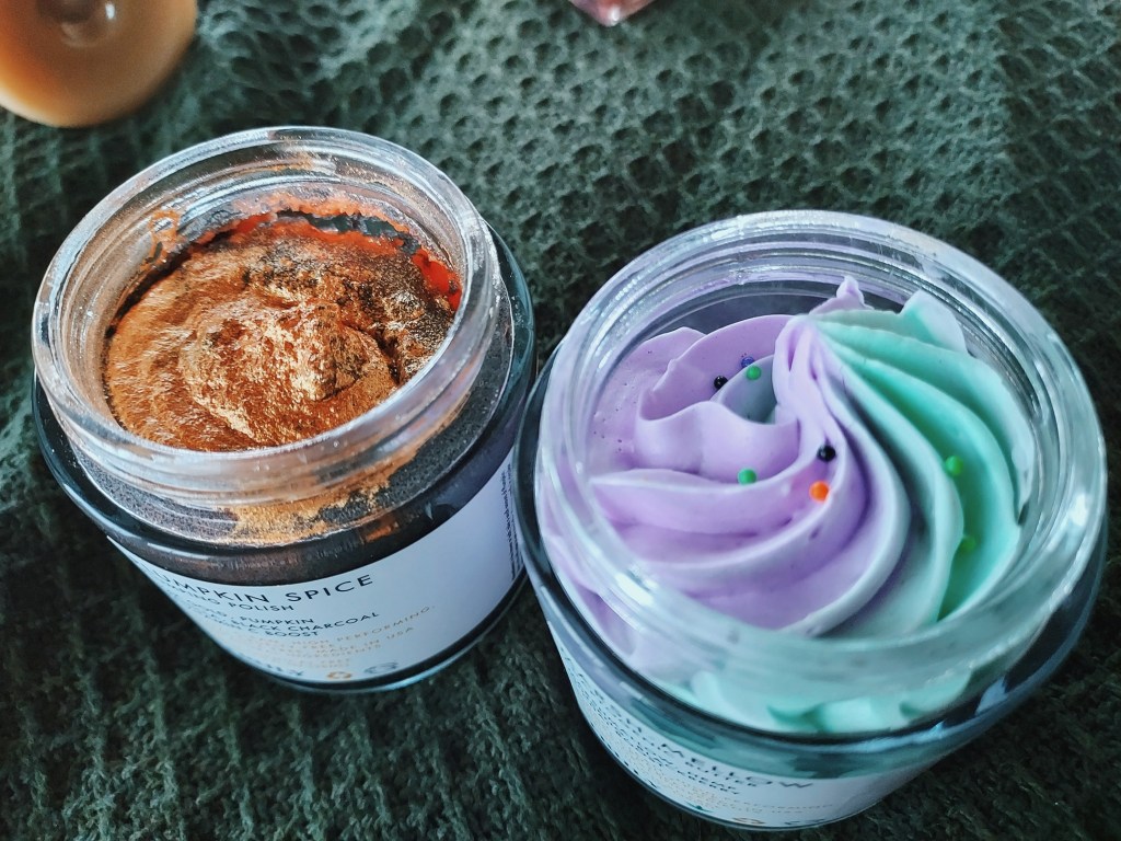 I follow it up with “Marsh-Mellow” whipped body butter. This super hydrating and fast-absorbing moisturizer is infused with hemp and ginseng, and smells like whipped cream (which pairs nicely with the body polish!)