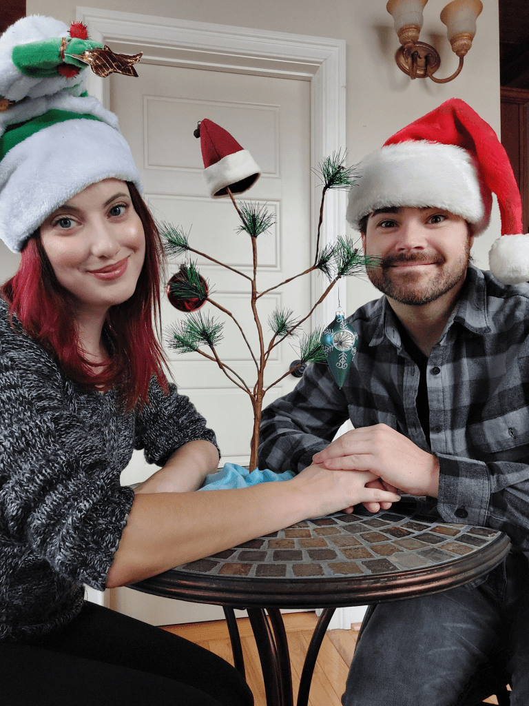 And this year, while the Santa hats made a comeback- Troy and I opted to pose in and around my apartment with a Charlie Brown tree he’d brought along. Much like the 2019 photo shoot- this one was just as fun, albeit with better natural lighting.
