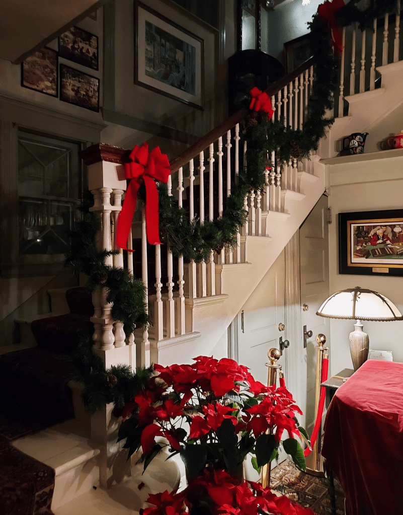 I enjoyed a six course (!!!) meal at the inn’s tavern (I would go on to enjoy a phenomenal breakfast and a New Year’s Day dinner in their gorgeous and very fancy dining room shortly thereafter) while listening to a live jazz band and marveling at the inn’s Christmas decorations between bites. After eating entirely too much and having just a few too many sips of champagne- I retreated to my suite to talk to friends leading up to midnight while simultaneously watching the countdown on TV- one of my favorite traditions!