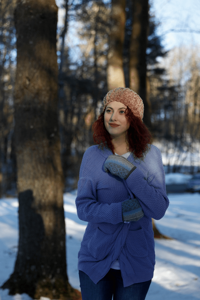And although you can’t see it because of my mittens- my nails are very much painted periwinkle, too- with one of my favorite long-lasting and chip-resistant shades from Olive & June, ‘Bold & Unshaken.’