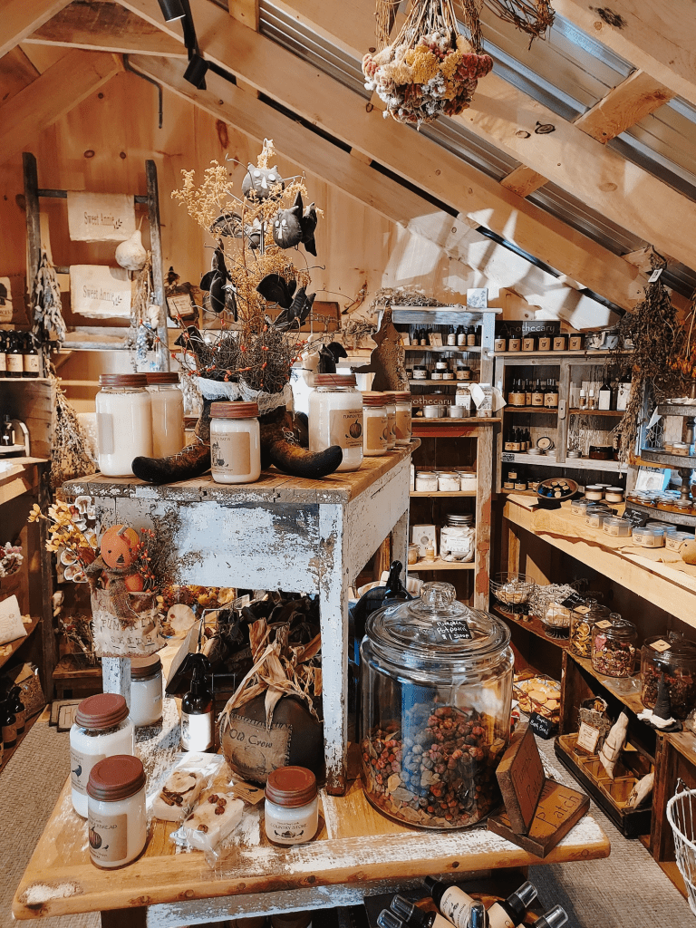 Sunny Mountain Farm is a farmstand, apothecary and gift shop all rolled into one quaint and super cute store on the back roads of Western Massachusetts. Featuring fresh produce, flowers, home décor, natural bath and body products and homemade candles and potpourri via Crows Nest Primitive Shoppe– I was immediately smitten and picked out a few things to decorate my apartment for the season (and surprise my mom with a couple of gifts. too.)