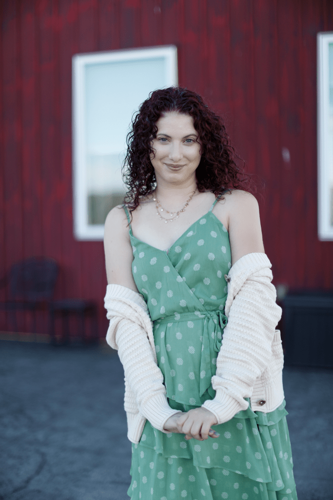 The nuptials were outdoors at the 1911 Established Distillery– and although I’m a big fan of greys, deep reds/oranges and caramel hues this time of year- I opted to go a little green with my dress with this sage-colored, tiered and magically flowing midi dress from Lauren Conrad.