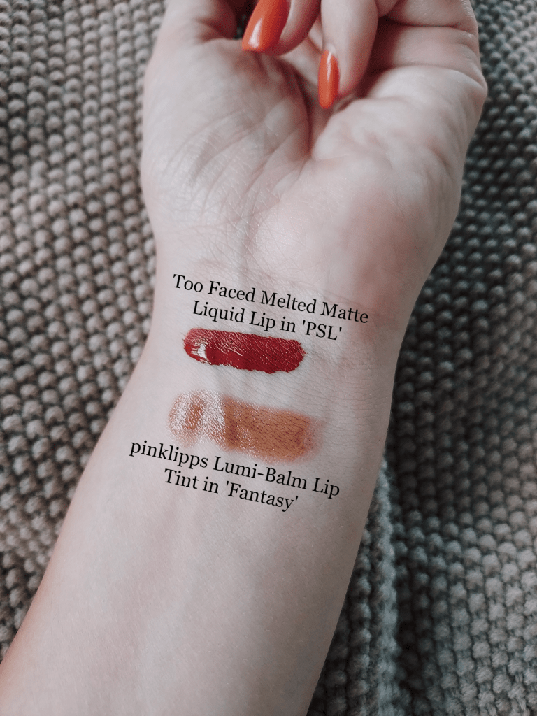 For Fall-inspired lip looks this season, I also turned to Too Faced and their Melted Matte Liquid Lip in ‘PSL’. Scented like the beloved beverage and in fun, festive packaging- this quick-drying formula sets into place as a beautiful terracotta red that is gorgeous on any complexion. This is my go-to for the evenings and dressier Autumnal activities- although I fully admit to applying it at random just because it smells so good.