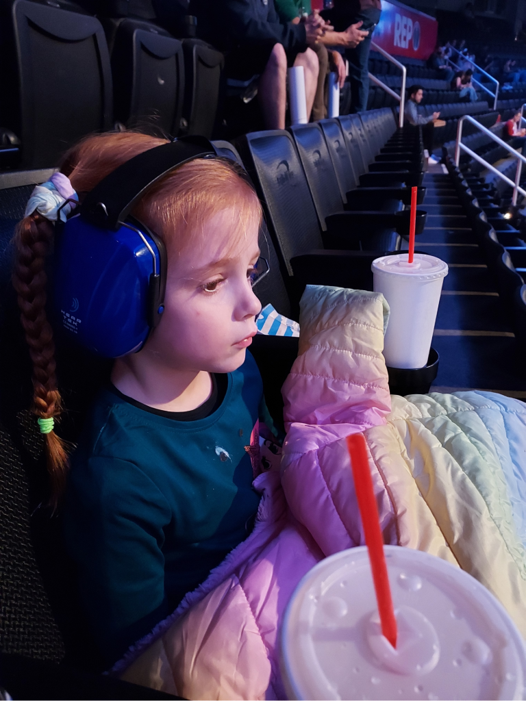 They had their popcorn, lemonade and headphones. They were all set!