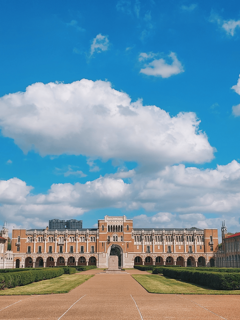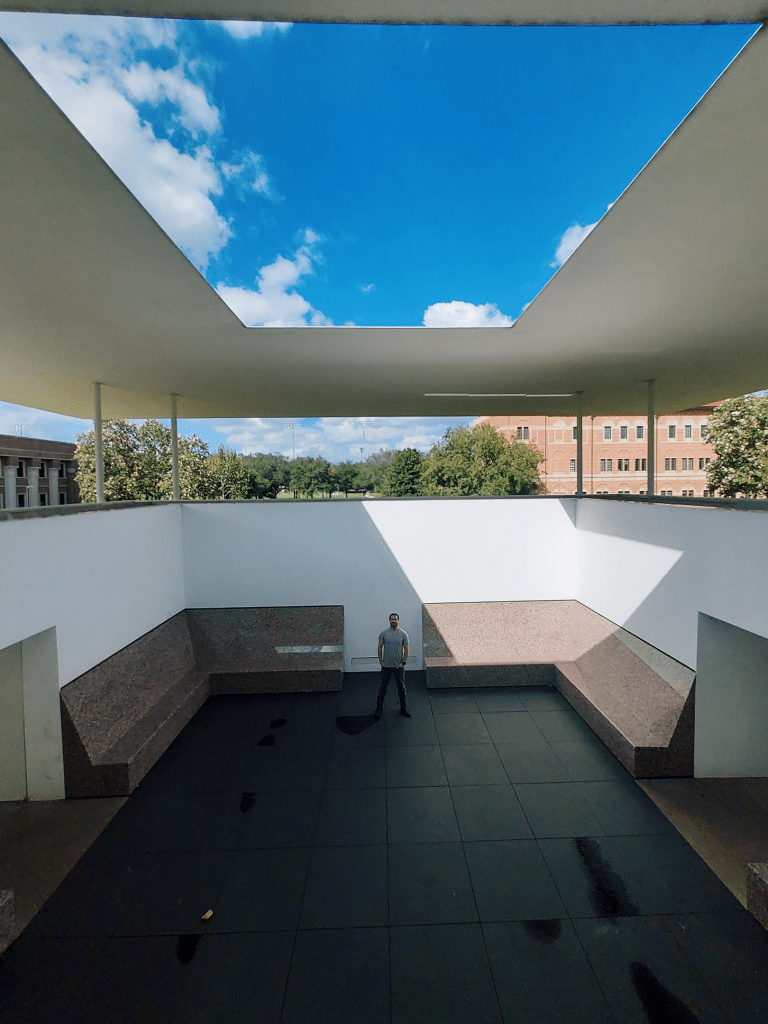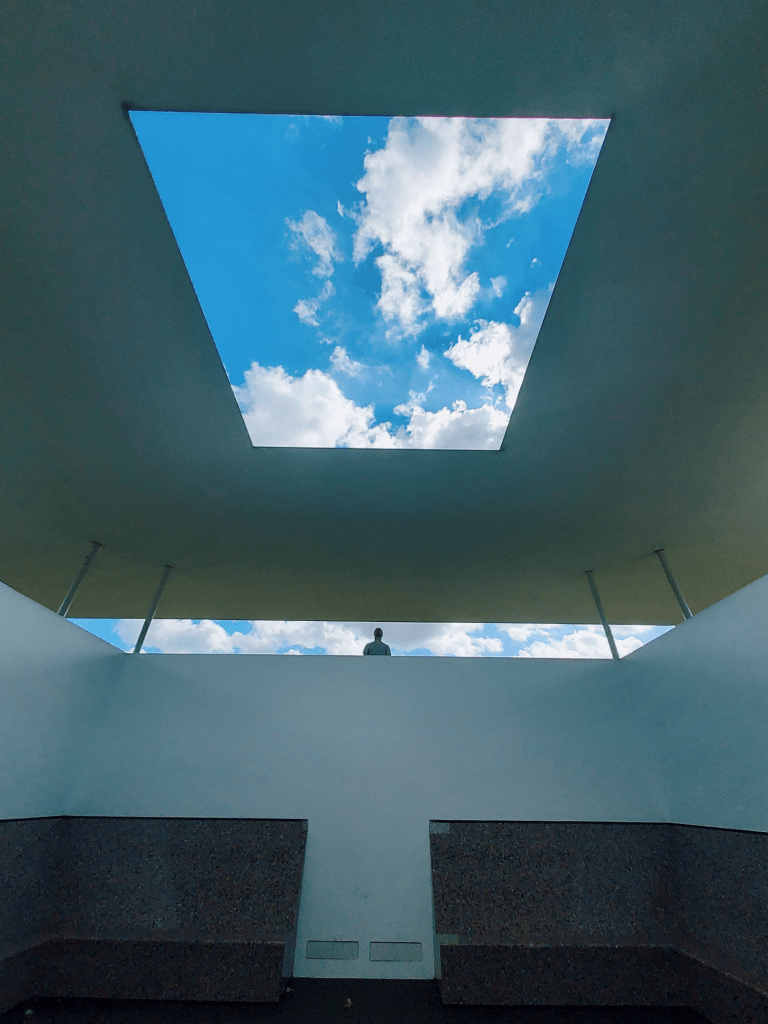 Although the installation would have been phenomenal to see at sunset when it would be lit up- we still enjoyed walking around it and snapping photos of the perfectly framed sky and clouds that were visible from within it. It also gave us the opportunity to check our Rice University’s campus- which was sprawling and beautful!
