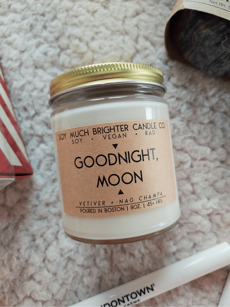 Another gift in my self care box- and made locally!- was this soy candle from the Soy Much Brighter Candle Company based out of Boston. Vegan, cruelty-free and made sustainably- their candles have some of the cutest packaging and smell absolutely delightful without being overpowering or headache-inducing.