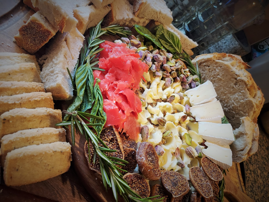 Saturday morning/afternoon was spent recording new episodes of Stef & I’s podcast at her house and audio studio, where she’d also prepared a ‘Butter Board’ with smoked salmon, brie cheese, pistachios, sourdough, etc. for our enjoyment. While everything was delicious (of course!) it was the presentation that kept me talking. Stef was determined to make everything look “Pinterest Worthy” and I think she may have surpassed any and all expectations with the finished board!