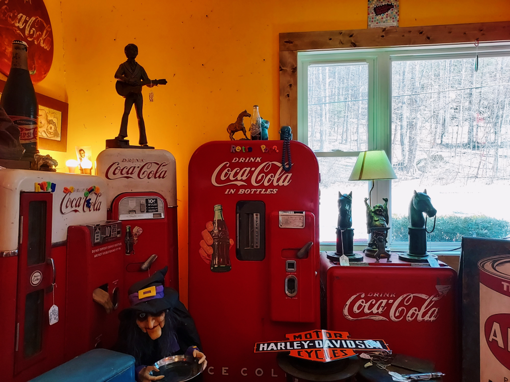 The Retro Pop Shop in aforementioned Lee, Massachusetts is an antique shop featuring an impressive collection of retro, roadside memorabilia from the golden age of malt shops and cross-country road trips. Jukeboxes, classic Coke Cola vending machines, neon motel signs and so much more- it’s easy to get lost in just how many finds are stacked around!