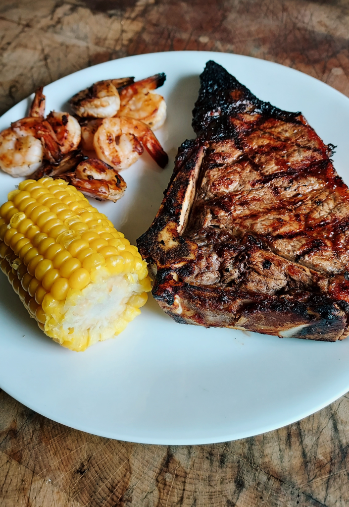 That being said, when we had one of those precious, few-and-far-between days last week- I took the opportunity to facilitate a quick grilling session in order to prepare/serve a classic ‘Surf n’ Turf’ combination- grilled and seasoned ribeye steak and shrimp!