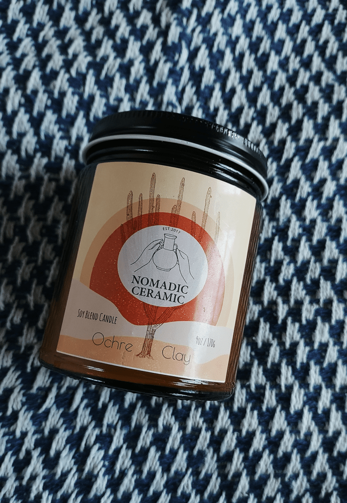 During a recent weekend outing, Troy had made a pit stop in my beloved Joshua Tree to do some sightseeing and shopping. While there, he came across Nomadic Ceramic– and knowing my love of all things candles, and wanting to make sure my apartment had a Summery, in-between-seasons fragrance before I start lighting all the apple crisp and pumpkin spice ones I’ve been stockpiling- he picked up this one for me.