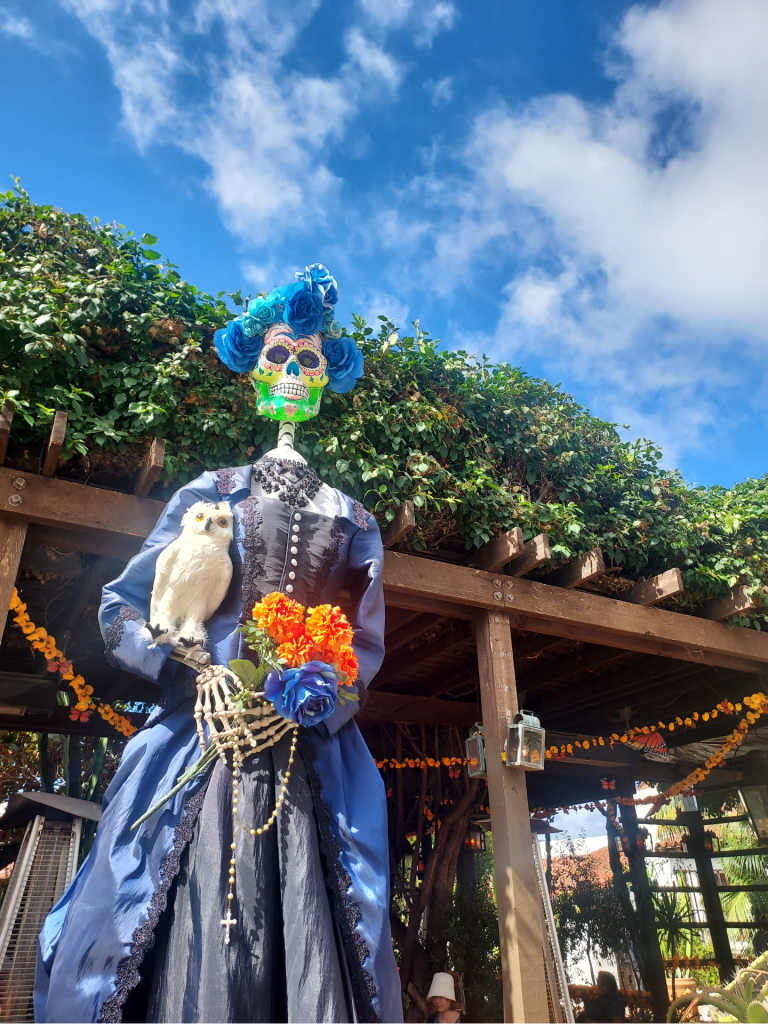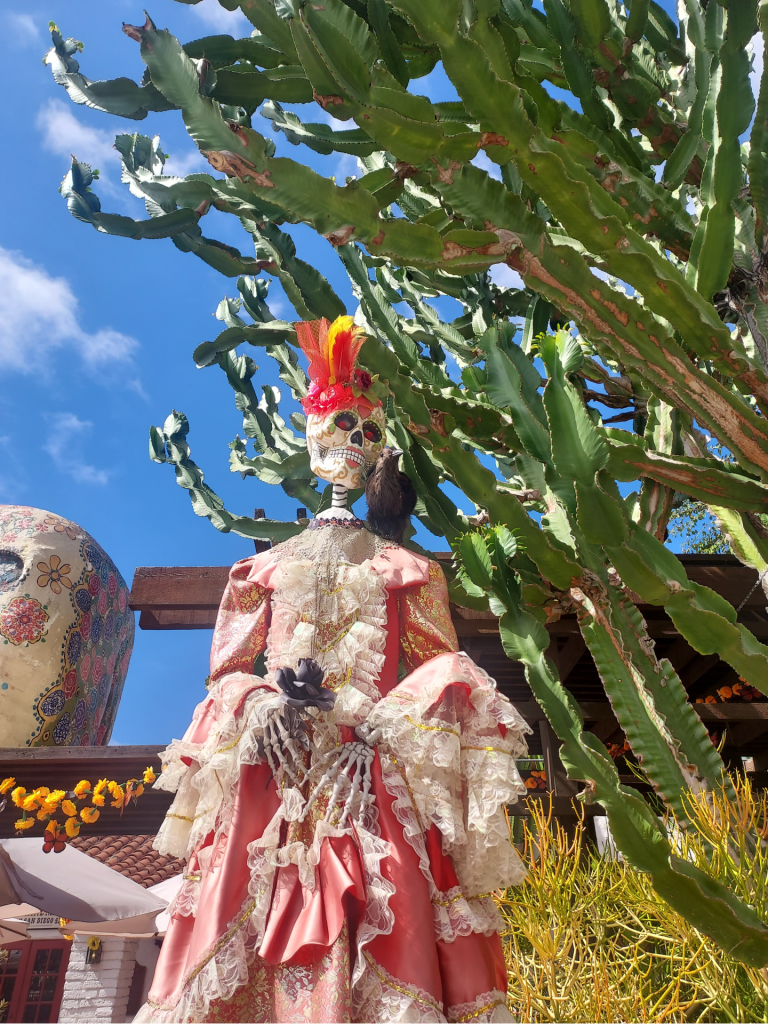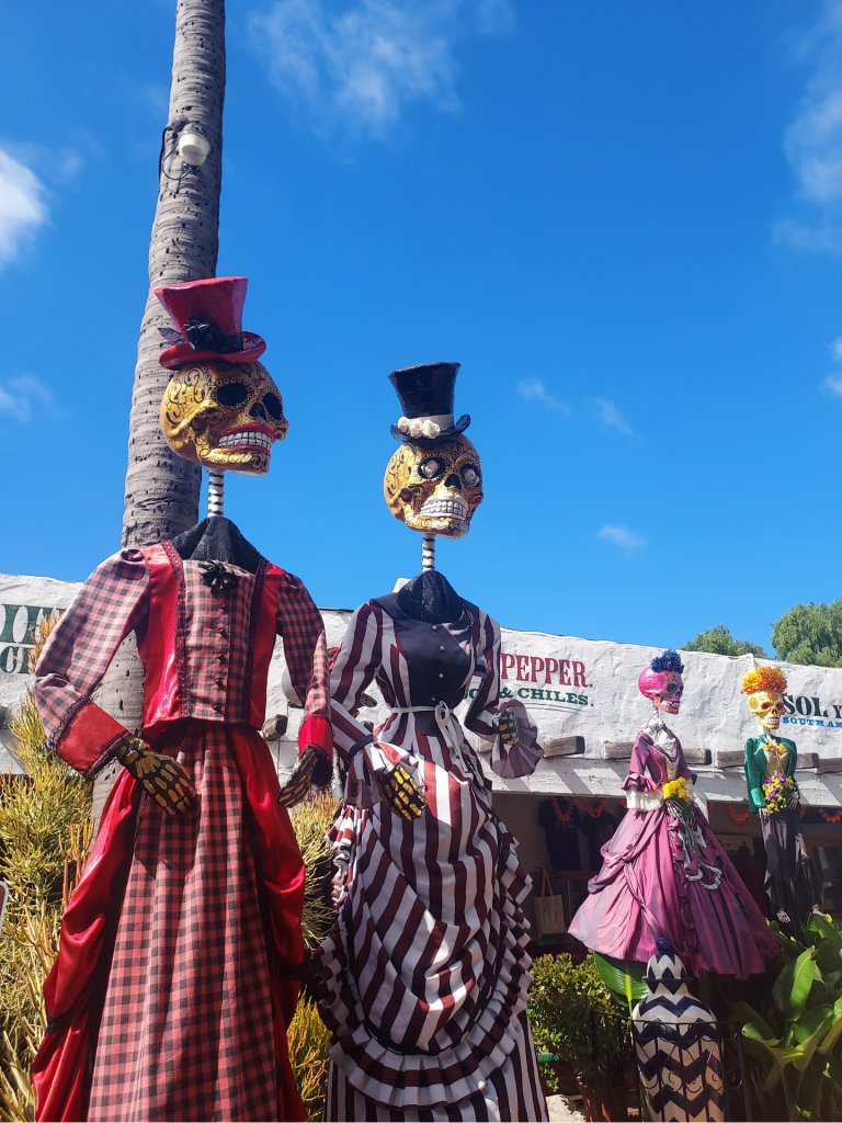 Last Wednesday, I returned to San Diego with Troy for an afternoon that began in La Jolla for his job and ended with a brief stop in Old Town- which has been decorated so beautifully and elaborately for the upcoming Dia De Los Muertos. I had an absolute blast shopping and snapping photos of towering skeletons, brightly colored flowers and tributes to loved ones who have departed before us. I think the displays will be up through the end of the month- and they’re worth checking out if you’re in the area! I love Old Town so, so much.