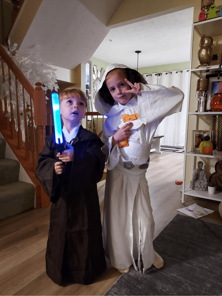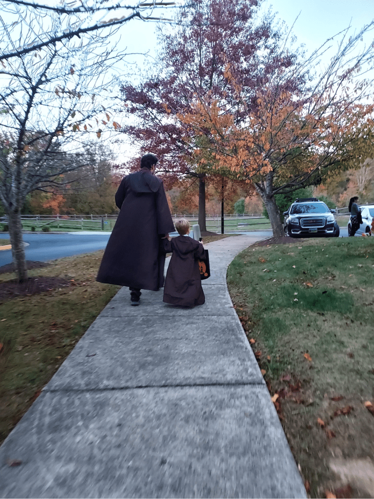 This was my first Halloween with them since 2020 when I had flown out to Vegas for a more socially distanced trick-or-treating experience around Henderson, Nevada. Since then, they’ve definitely gotten the hang of it- and at times I found myself jogging to keep up with them as they sprinted door to door to fill their candy bags. At the end of the night, they needed help carrying them back to the house, so I think they did pretty good!