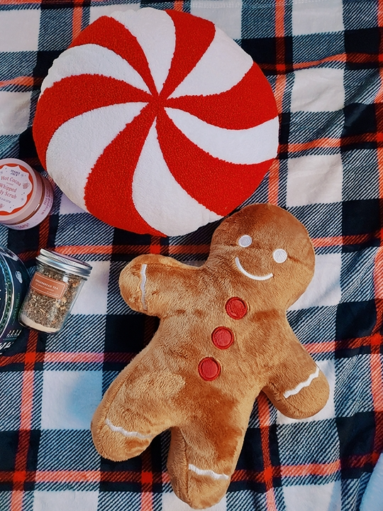 When trying to make my apartment look as festive as possible for Troy’s arrival in New England last week, I turned to Target to grab some last minute candles, wall hangings, etc. What I also found were these decorative pillows that were just too cute to pass up. While they had the typical tree-shaped ones and snowflake varieties, my eyes immediately went to the large gingerbread man and peppermint candy ones. At under $10 each, these were a steal- and have been alternating between sitting on my bed and my couch since I bought them.