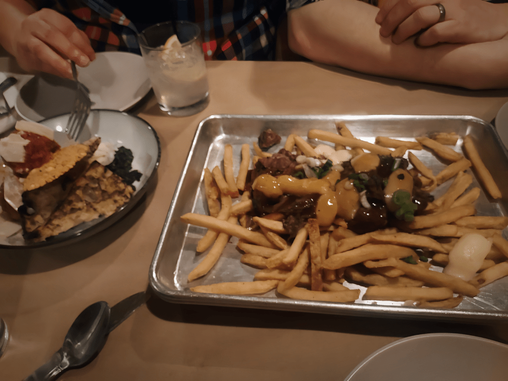 I had never been to The Barn before, and although seating was a little tight given how busy it was, and the paper they put across the tables made for some uncomfortable moments- it was easily overlooked when we got our food. I had the braised short ribs served on top of a potato and kale croquette with Brussel Sprouts- and it was divine!