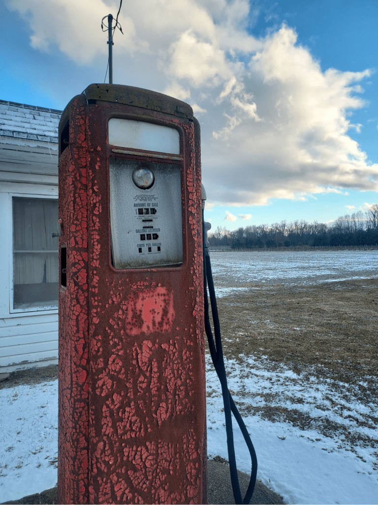 When it got to be a little too cold to stay out for much longer, we hopped in the car to head home- stopping just a couple more times to snap photos of some of the abandoned gas pumps and huge trees we’d spotted on our way into town just as the sun was beginning to set.