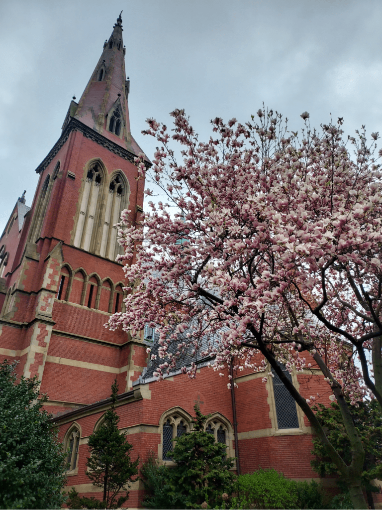 I had to stop at a few more shops in the area after I left the bookstore, but I also made it a point to walk down towards Commonwealth Avenue to snap some photos of the Magnolia blossoms while they’re at peak pink-ness this season- something I hadn’t had the chance to do in the past couple of years because of my schedule. Although I had resigned myself to the fact that I was going to get drenched in the rain- the sun actually came out (and stayed out!) while I was making my way over!