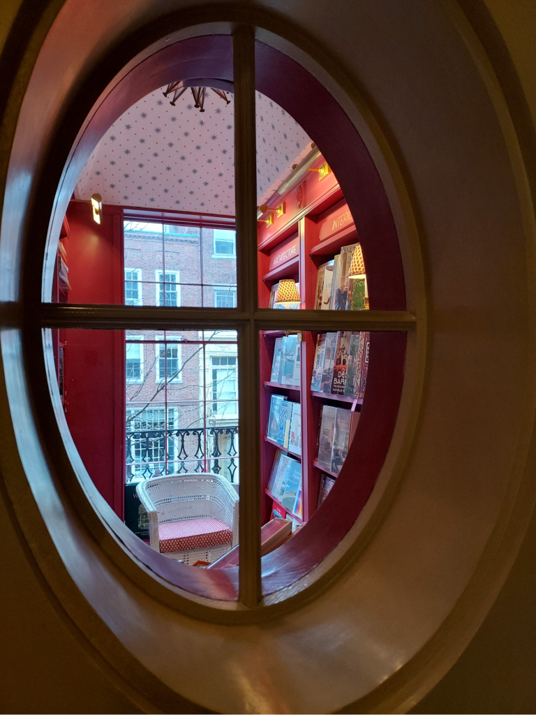 Case in point, this past Saturday when the “partly cloudy” forecast turned into “nonstop rain,” instead. Knowing I’d be heading into Boston for the day to do some gift shopping, I made the best of it and booked myself a table-for-one to enjoy a light breakfast, a latte, and some browsing at Beacon Hill Books & Café. This five-story brownstone in, you guessed it, Beacon Hill- has been lovingly transformed into a book store/gift shop and restaurant with both indoor and outdoor seating. Naturally, because of the rain – I opted for an indoor seat.