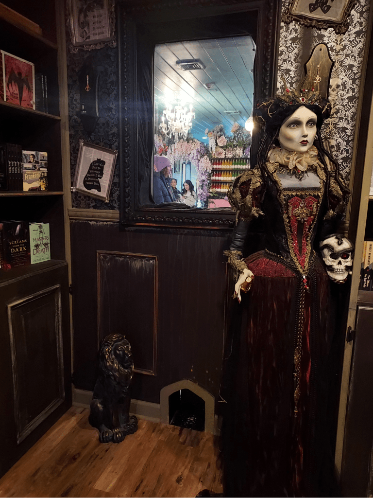 After the aquarium, our party headed across the street to Olde Mistick Village for some bubble tea and lunch. I was excited to show everyone Alice in the Village/Alice’s Haunted Little Bookshop, which I had last written about near the end of Summer of 2022– and both are just as fun and as vibrant as ever!