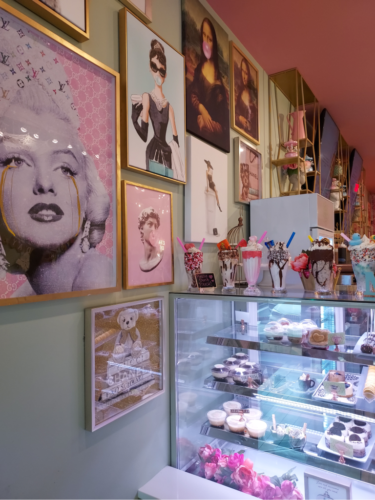 With handcrafted and elaborate milkshakes, sundaes, tea party platters, lattes and lemonades- all served within the most beautiful, sparkly and pink interior- this little shop was the perfect destination and “getaway” for what had turned into a rainy and somewhat chilly Spring afternoon.