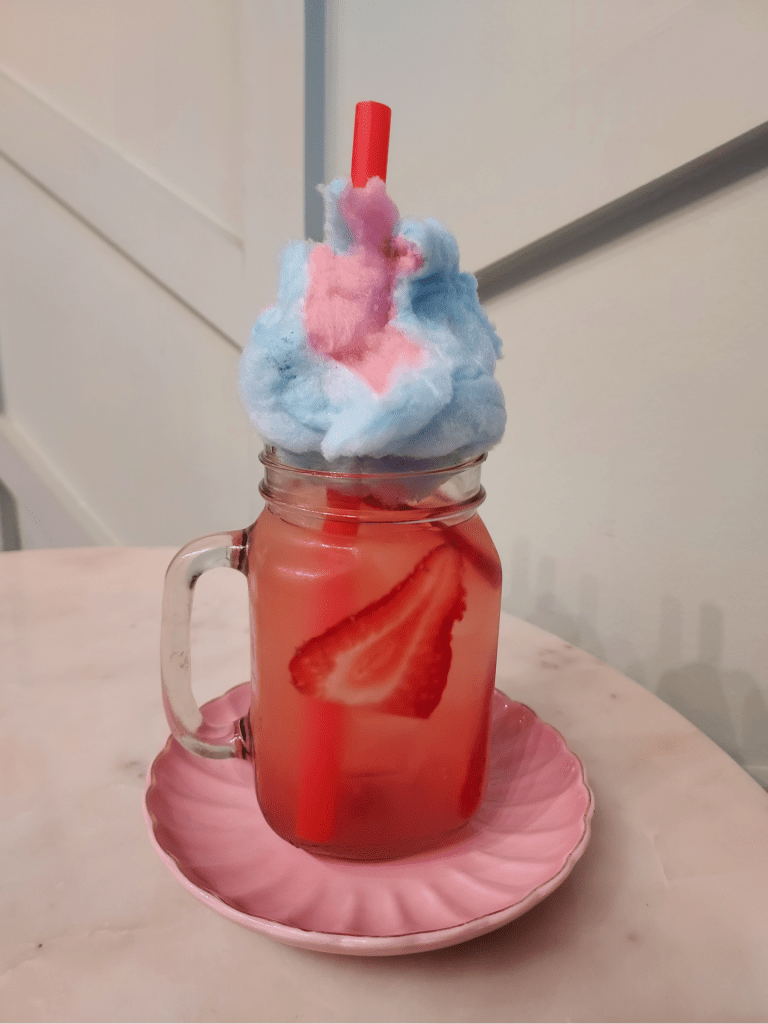 I’d had an iced coffee shortly before my arrival and didn’t want to overdo it with the caffeine and sugar, so I opted for an order of their chicken coxinha and strawberry lemonade- but the staff (who were all so lovely!) made sure to make it just as pretty as some of their other treats so that I could get a couple of cute photos while I was there. The cotton candy on top of my lemonade? Delicious!