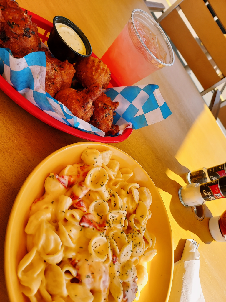 While in town, I also grabbed some clam cakes and lobster mac & cheese in a very bright and colorful outdoor dining are at Buster Krab’s when I wasn’t snapping photos of some nearby, equally bright and colorful beach cottages and shops.