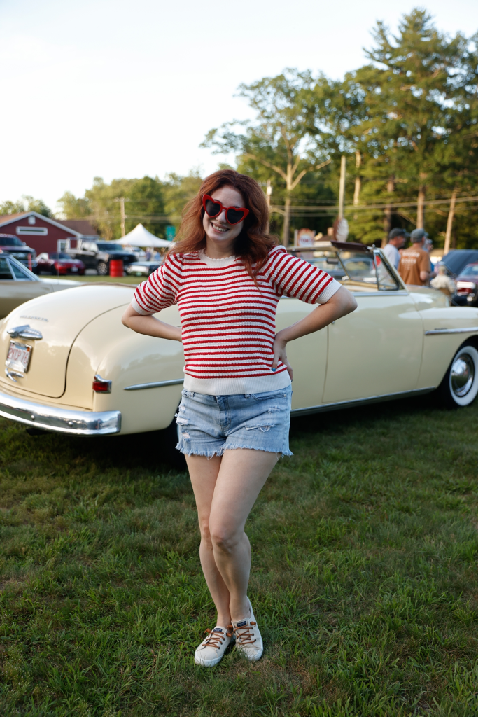 Before we start grilling up hot dogs and setting off fireworks we purchased over state lines in New Hampshire, and before I head to the airport later on this afternoon to pick up Troy (who is visiting for tomorrow’s holiday!) I thought it’d be fun to share some photos of a somewhat patriotic outfit I recently put together when Dan and I headed over to Whately, Massachusetts for a classic car show and some ice cream at Tom’s to usher in the beginning of the month properly!