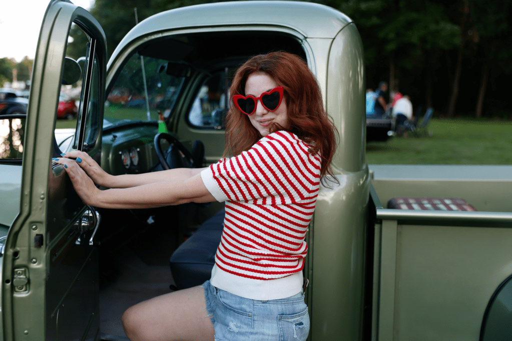 We had such a great time, and the turnout for the car show was incredible. There were so many unique, vintage vehicles to look at – but my favorite had to be an army green 1949 Ford pickup truck that was in mint condition. Shout-out to the owner for letting me climb inside it for a picture. If only I could take it for a spin one of these days!