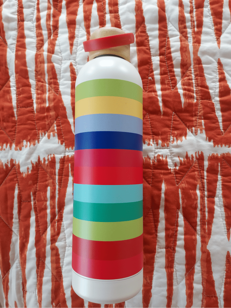 Earlier this month, during one of my bi-weekly trips to Target, I spotted this bright, striped stainless steel bottle from Tabitha Brown and had to add it to my collection – not just because of it’s vibrant and retro design, but also because it’s huge! – and can hold up to 34 ounces of ice water for when I’m running errands, hiking, or going on any of my infamously long road trips around the Northeast or when I visit Southern California.