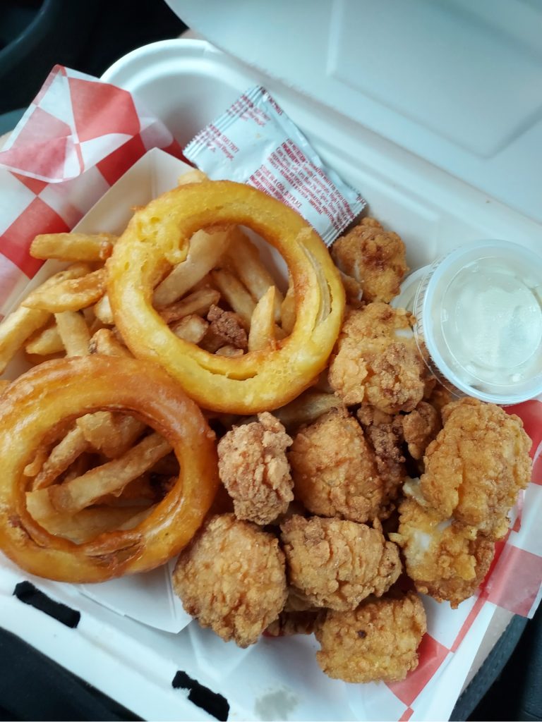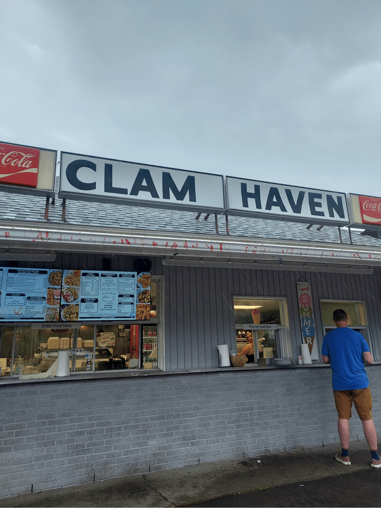 And then yesterday, after her mentioning to me a few times that she had wanted to head back because it’s one of her favorite spots for fried seafood platters, my mom and I packed up Oliver for a scenic road trip to Derry, New Hampshire to visit Clam Haven for a lunch of scallops, clam strips, haddock and plenty of fries to share. And despite the fact that we got there in the midst of a series of severe thunderstorms and torrential downpours that left us soaked for the entirety of the drive back to her house, it was well worth the trip.