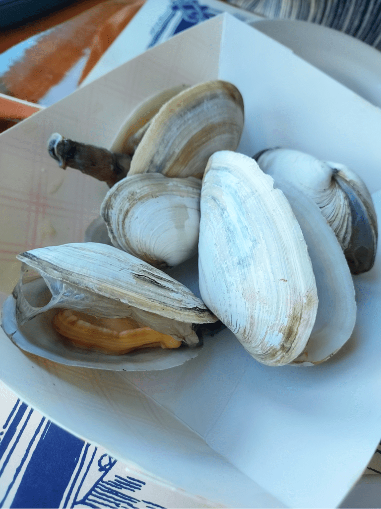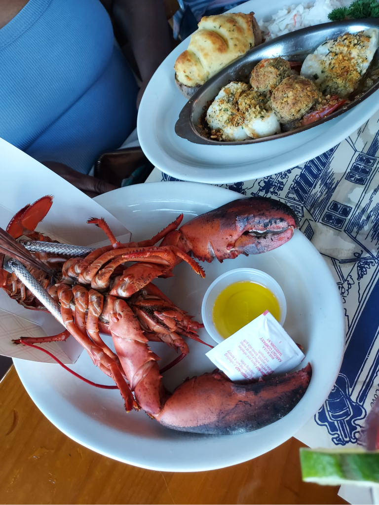 Once back on land, we headed across the street on the dock for a seafood dinner with a view of Perkins Cove at Oarweed Restaurant. The steamed clams, scallops, and lobster rolls were superb – and I easily could have eaten three more of everything. By the time we’d paid the check, the sun was beginning to set, so we went for a stroll along the water before heading over to Main Street for one more round of drinks before it was time for our designated driver (so appreciated! Thank you, Tracy!) to pile us back into the car for the ride home.