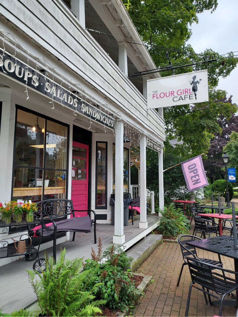 On my way, I stopped at the adorable Flour Girl Café & Bakery in Hebron, Connecticut – where I grabbed some fantastic looking muffins for my mom and an iced banana split latte for myself (complete with a cherry on top!) The café is currently building a brand new residence right next door to their current one, and from the looks of it so far – it’s shaping up to be great!