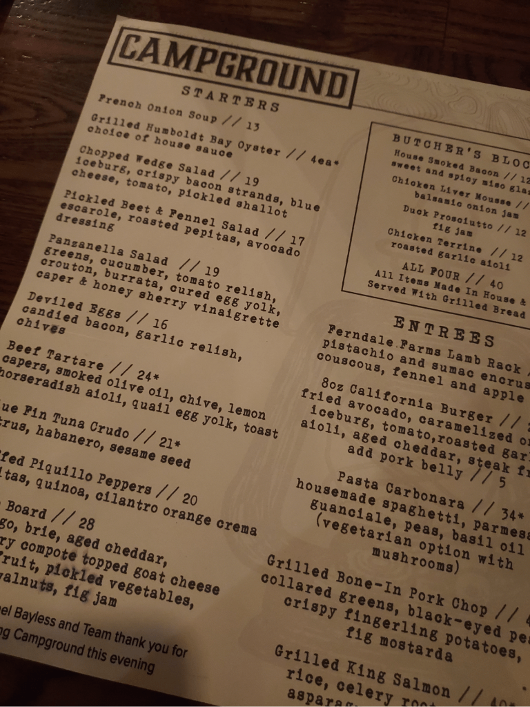 While I thought that would be the extent of our Redwood adventure, Troy had another outing planned for the following morning. We made sure to check out the nearby community garden within a short walking distance from the Zoo (and their impressive dahlia collection!) along with the famous Carson Mansion – with the super cute pink house across the street, too! – before grabbing a fabulous dinner at Campground in nearby Arcata and heading back to our room for the night to catch some much-needed sleep after such a long and busy day.