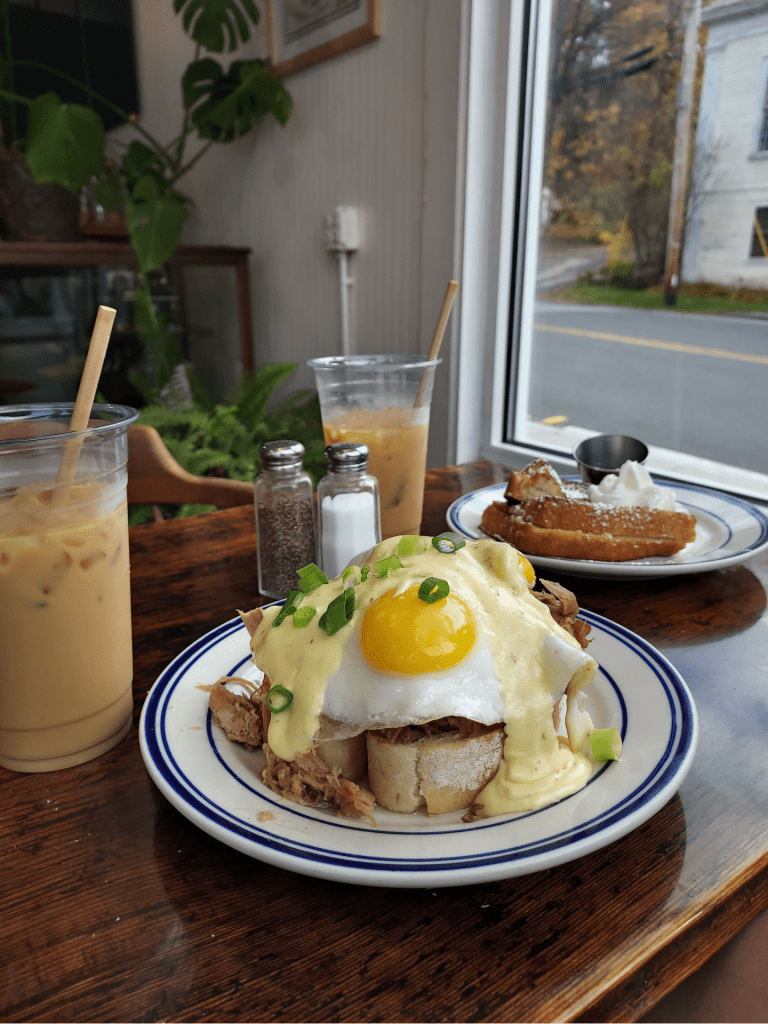 Prior to heading out to the orchard of our choosing, Dan and I made a quick stop at Wells Provisions in Charlemont to enjoy a surprise pop-up breakfast they were hosting on Saturday morning to commemorate “Cider Days.” As tempting as it was to indulge in some of their apple spice-stuffed French Toast (Dan was kind enough to let me try a bite of his though, and it was amazing!) I stuck with my tried and true – the Pulled Pork Benedict.