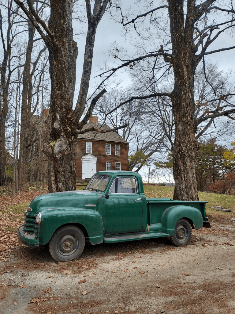 After eating way too much, Dan and I hit the road to check out New Salem Preserves & Heritage Cider in New Salem, Massachusetts – a town I had never been to before (it’s a “blink and you’ll miss it” kind of place!) Dan knew I’d love it because they have the cutest green vintage Chevy pick-up truck parked outside and a lovely little barn out back where they had their “Cider Days” event set up. We got there before the crowds and found perfect seating overlooking the orchard and distant Quabbin Reservoir where we split a hard cider flight and some regular sweet cider.