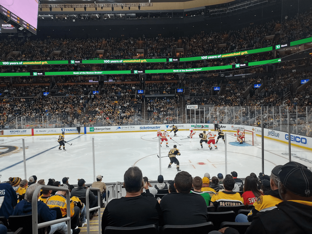I had mentioned that Troy was visiting a couple of weeks ago and had been here for his birthday. That week was also his mother’s birthday, and while he went to go visit her for a proper celebration, I headed to Boston with Dan to catch the Bruins/Calgary Flames game at TD Garden since my job had surprised me with tickets for the night. Our seats were amazing, right next to the ice, and the night was even more incredible when the Bruins won with twenty seconds left on the clock during an overtime shoot-out. It was so unbelievably cool, and I’m so thankful my office gave me a hook up!