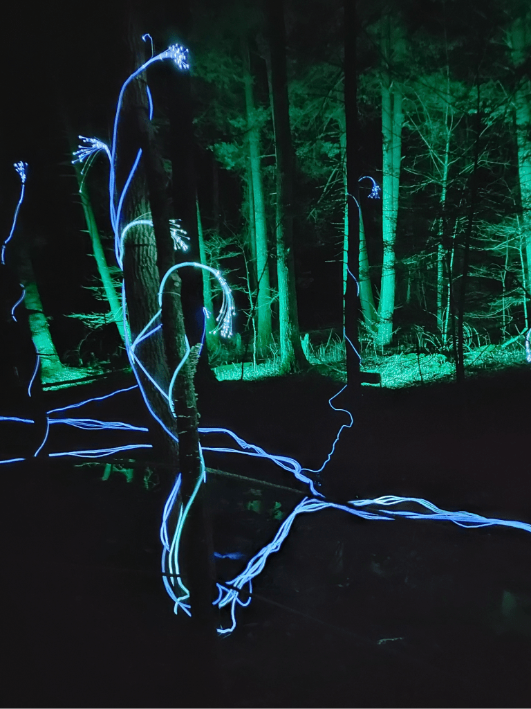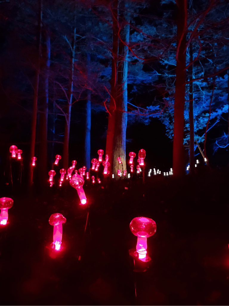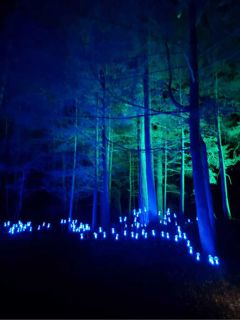 But to quickly rewind for a moment, I have to talk about my Thanksgiving weekend! Last Wednesday night, leading up to having dinner with my family the following day, I had headed out to Lenox, Massachusetts to check out the annual “NightWood” installations on the grounds at The Mount. Running from now through January 4th, NightWood is an immersive experience where visitors follow along a mile long trail that circles the woods surrounding the stunning mansion. Along the way, there are a number of light/sound experiences and displays to be a part of and which tell a story as you progress on the path. The timed experiences start over every couple of minutes, so there’s no rush to complete the trail and no need to worry about missing any of it.